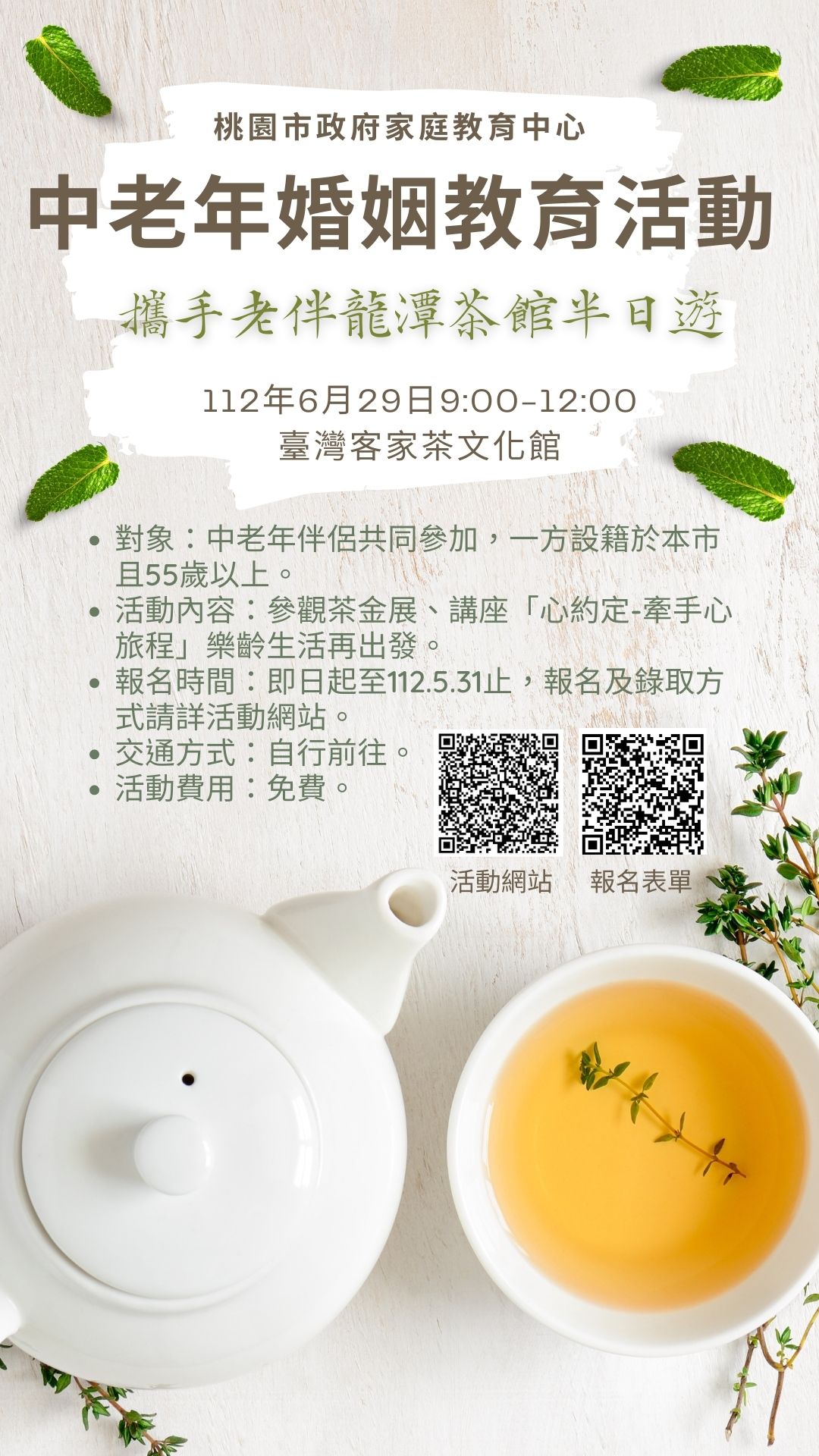 一、 | 依據桃園市政府家庭教育中心112年中老年婚姻教育活動實施計畫辦理。 |