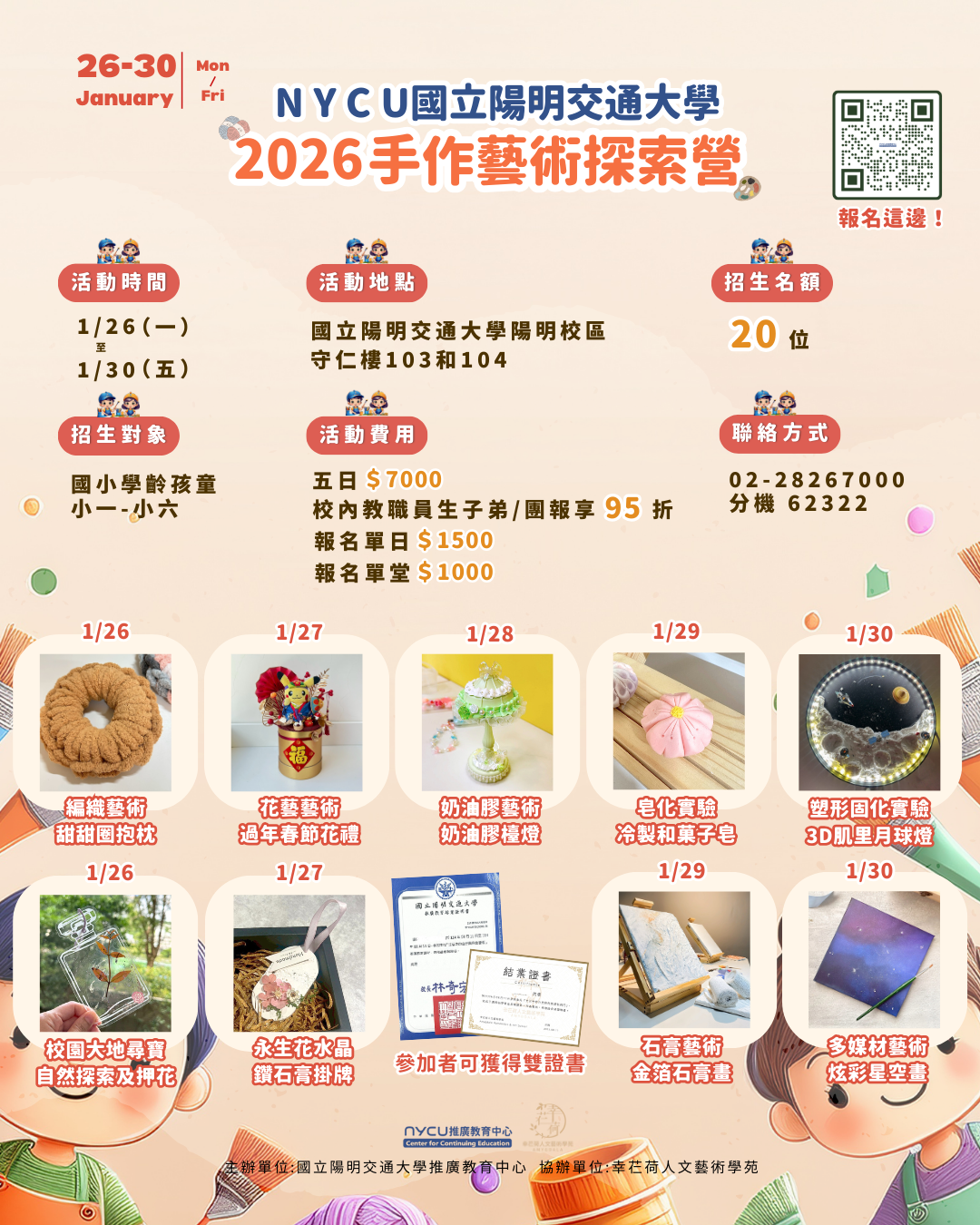 | 二、 | 報名方式:請至本校推廣中心網站(https://cec.nycu.edu.tw/),註冊成為會員後,點選課程報名。 |